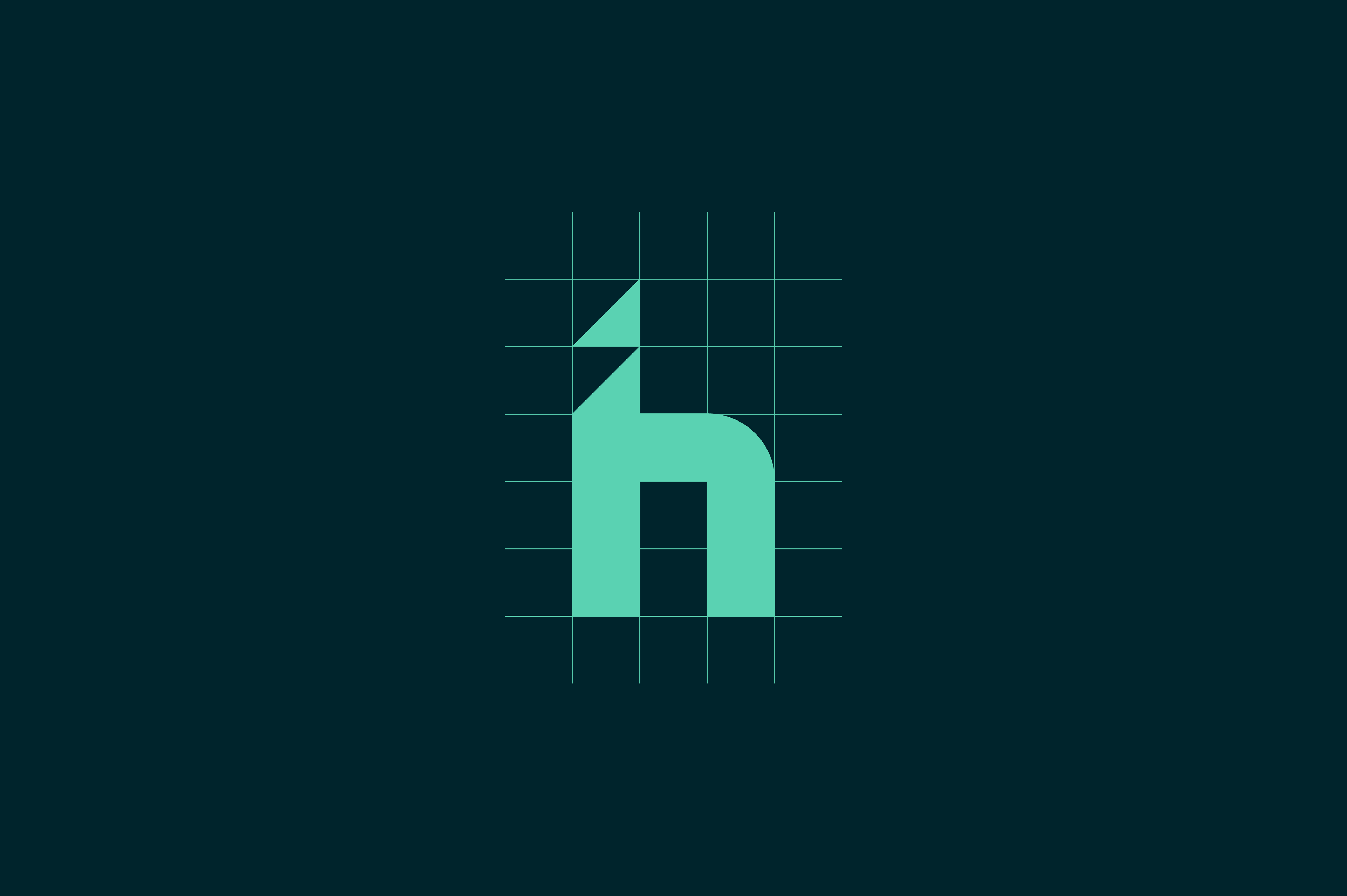 This h-Bar Instruments logo proposal consists of a custom font designed on a grid; the h-Bar symbol represents the reduced Planck constant, which is a fundamental physical constant of foundational importance in quantum mechanics.