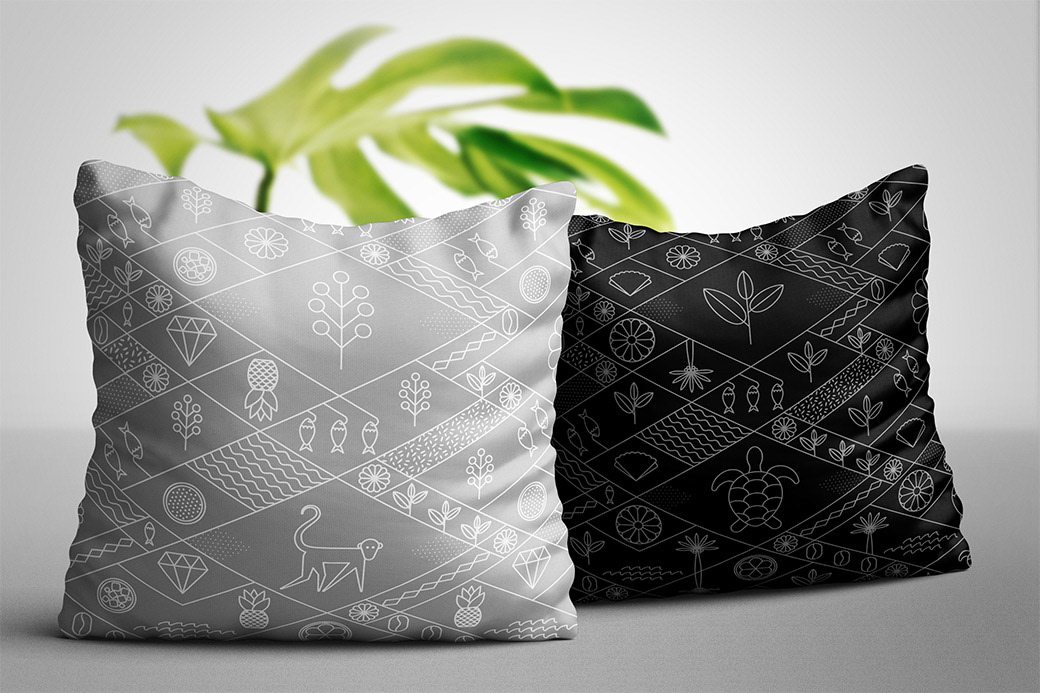 Geometric textile patterns for a cafeteria based in Sri Lanka, with tropical themes